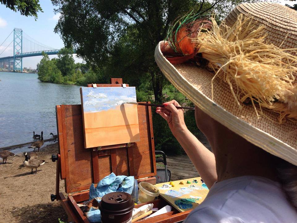 I will deliver this painting to the Red Brick Restaurant in Dexter this week. I was painting Night Visions at the Paint Dexter Plein Air Festival, and the owner asked for a commission of her restaurant. I came back on the last night of the event to complete the work. The temperature dropped down into the 50’s! This was August! I was not dressed for it, and ended up having to leave before I finished it. I ended up with laryngitis, but thankfully it didn’t last long. The laryngitis probably was due to all the talking I did during the event. Most of the work was completed on location. I added the people, benches and window lettering from a photo. So, I think you can classify this as plein air.
