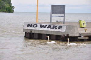 This swan family with cygnets in tow, headed out of the safety of the harbour into the Detroit River. They were soon swept down river with the wind and the swift current. I hope they made it safe harbour.